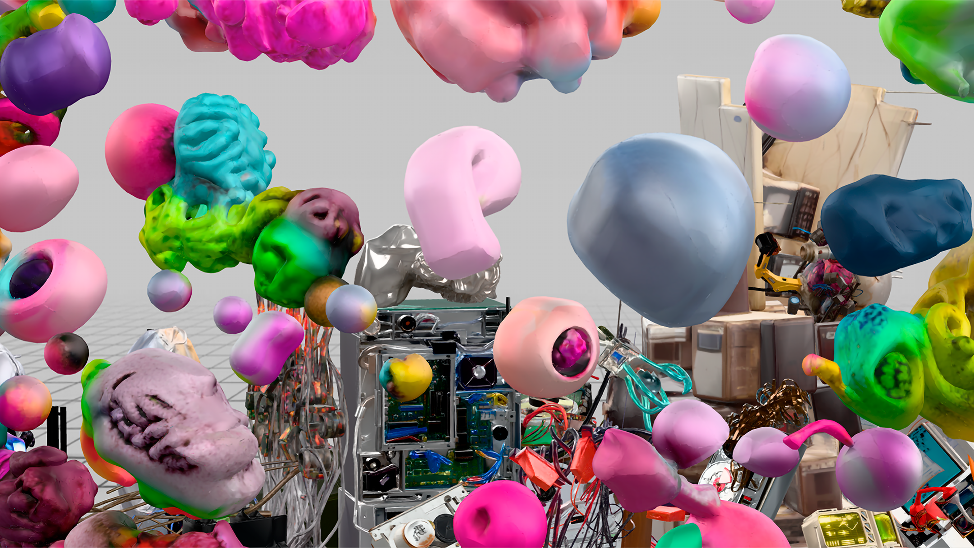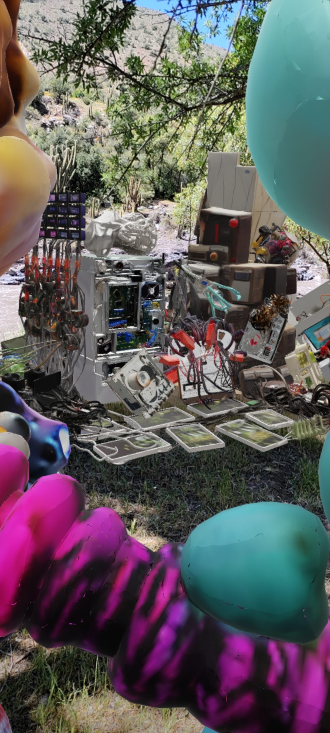 ¿Puede la concentración del poder material sobrevivir en una sociedad que se disuelve en flujos? // ¿Hasta qué punto la modernidad líquida ha convertido la precariedad en su forma estructural de existencia? // ¿Dónde se fractura la promesa digital cuando tropieza con la densidad de lo físico? // ¿Es la nube una metáfora de ligereza o el disfraz de una maquinaria insaciable de energía? // ¿Podemos hablar de lo inmaterial sin reconocer la industria que lo sostiene? // ¿De qué modo la flexibilidad simbólica se estrella contra las murallas de la rigidez política? // ¿Puede la apropiación de excedentes convertirse realmente en un acto creativo y no solo en una estrategia de supervivencia? // ¿La precariedad impulsa el arte o lo devora desde adentro? // ¿Quién decide qué permanece visible y qué se oculta en el espacio digital? // ¿Hasta qué punto las megacorporaciones tecnológicas pueden ocultar el impacto ambiental de su expansión? // ¿Es el peso material de lo digital la nueva huella del control corporativo? // ¿Puede el entretejido entre rigidez y flexibilidad, entre lo material y lo virtual, dar origen a nuevas formas de realidad? // ¿Se transforma la ausencia de propiedad en una nueva potencia productiva o en otra forma de dependencia? // ¿La contradicción puede ser más que un conflicto: un territorio donde habitar la creación? // ¿Podemos leer la infraestructura global como un lenguaje simbólico que también nos traduce a nosotros? // ¿La energía que sostiene la omnipresencia digital es el costo invisible de nuestra conectividad? // ¿Quién controla realmente los medios de producción y distribución cuando todo parece descentralizado? // ¿La invisibilidad de la red es una cuestión técnica o una estrategia de poder? // ¿En qué punto se cruzan las fuerzas sociales, energéticas y políticas para definir el rumbo de lo digital? // ¿Puede el peso del inmaterial revelar la verdadera magnitud de nuestra dependencia material? //