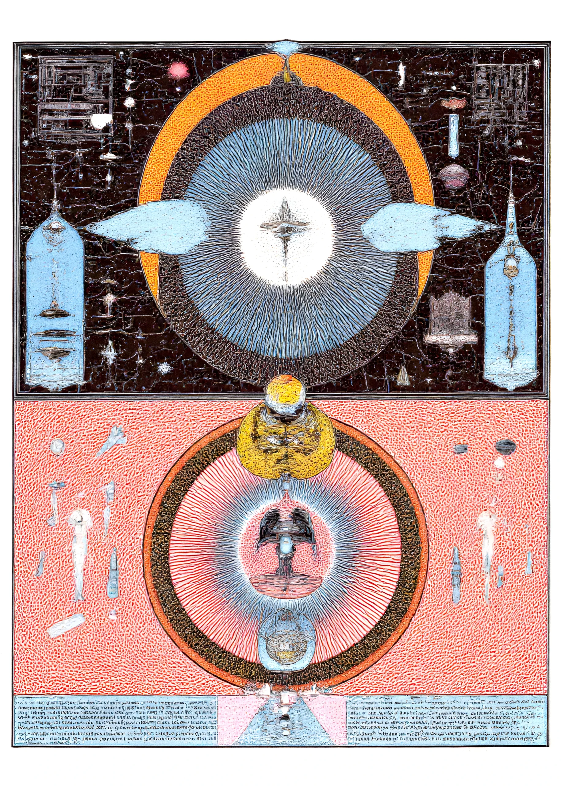 艺术不属于创造它的人,而属于解构它的人。倘若将AI生成的画作与训练模型时使用的342幅作品清单并列展示,“作者”便幻化成幽灵群像。作者的不存在是一种契约,艺术由此成为幽灵聚集的场所。我的“作品”终将成为他人焚毁之物的余烬(消亡的数据、被抹除的文化)。没有恒定的作者,艺术才能如病毒般在每个凝视中变异。唯有在“不存在”的土壤中,才能真正孕育崭新的艺术。因为既定存在注定不断重复;未被定义的非在却蕴含无限可能……或彻底的虚无。而在这片虚无之中,蕴藏着比所有数据集叠加起来更丰沛的伦理(与更极致的美)。